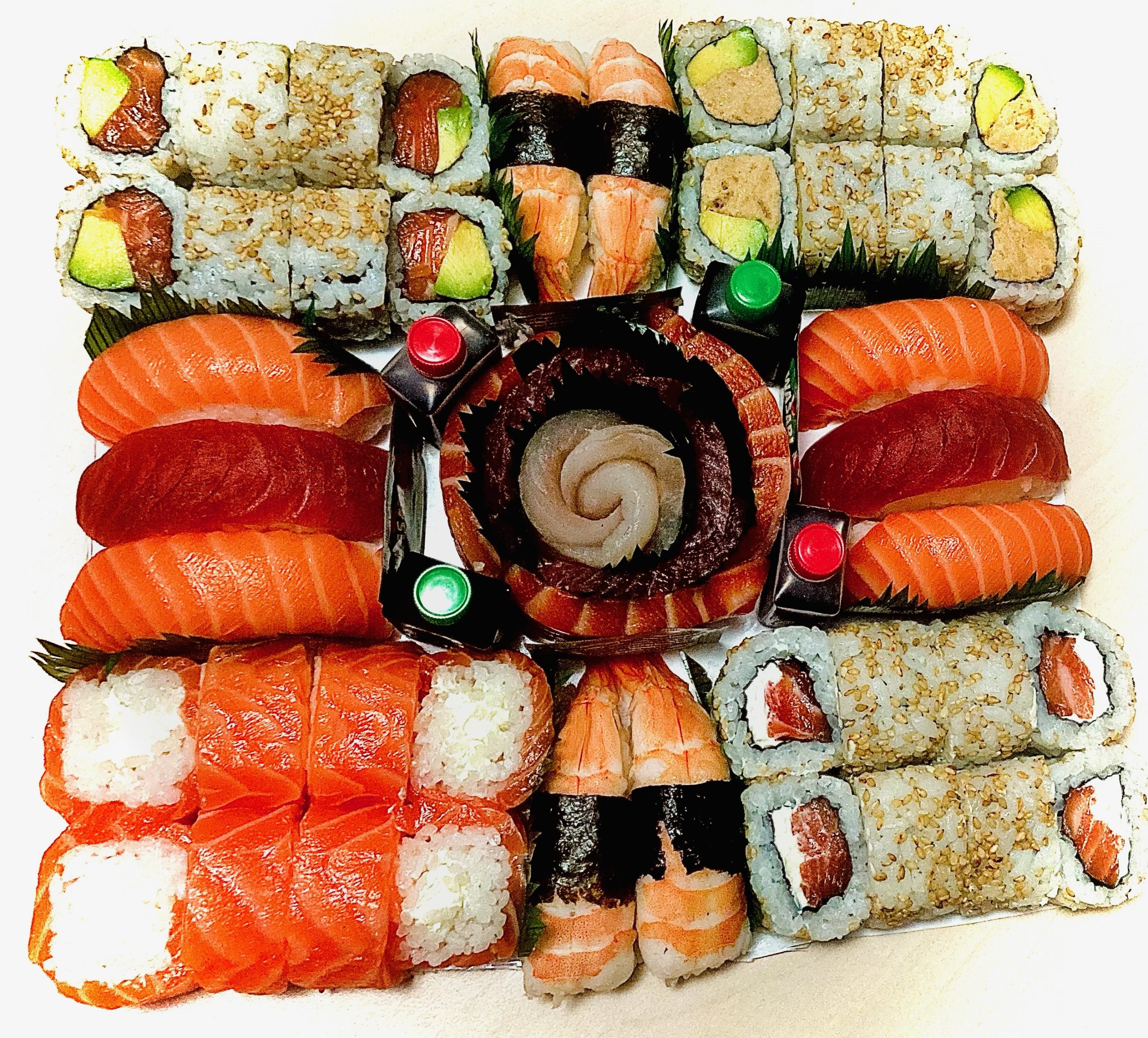 Sushi rolls et plateaux assortis